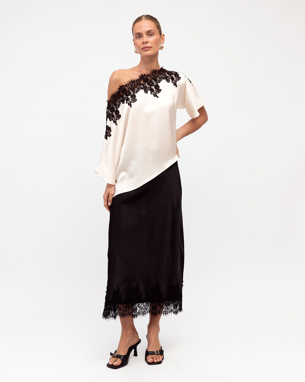 WHITE CLOSET / LIBERTY LACE SATIN TOP / BLACK / TF11809